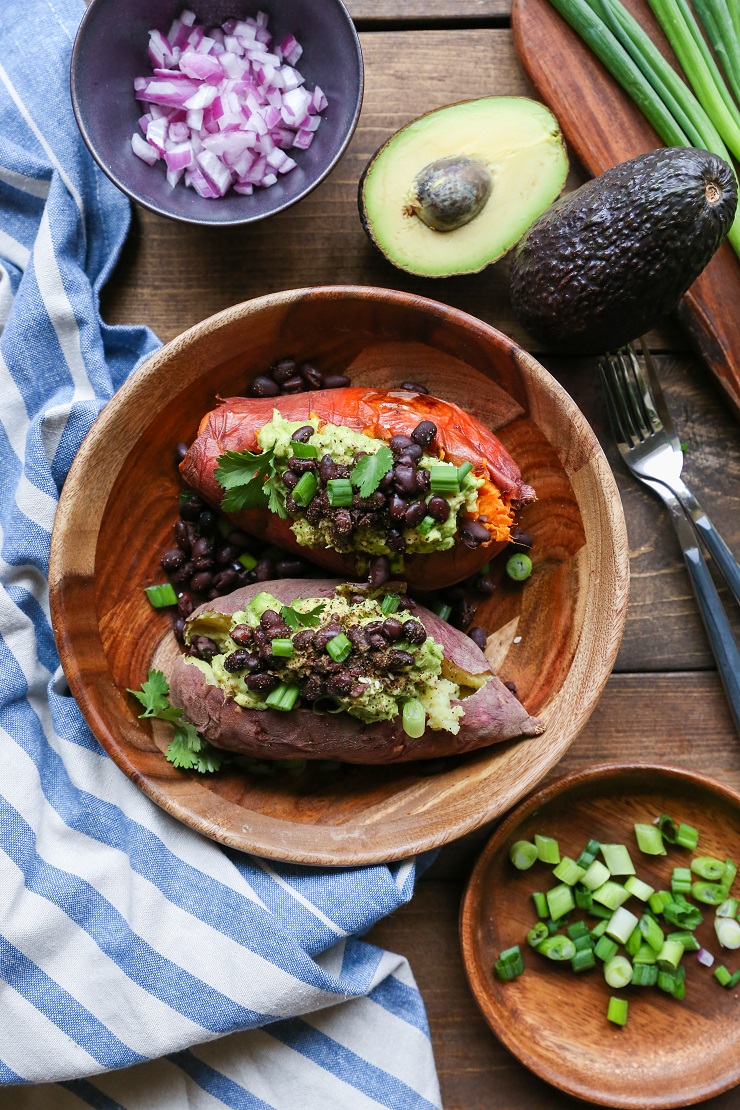 source:https://www.theroastedroot.net/guacamole-black-bean-loaded-sweet-potatoes/